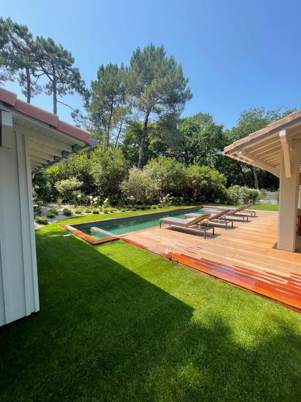 gazon permet souvent d’ouvrir l’espace autour d’une terrasse ou d’une piscine.