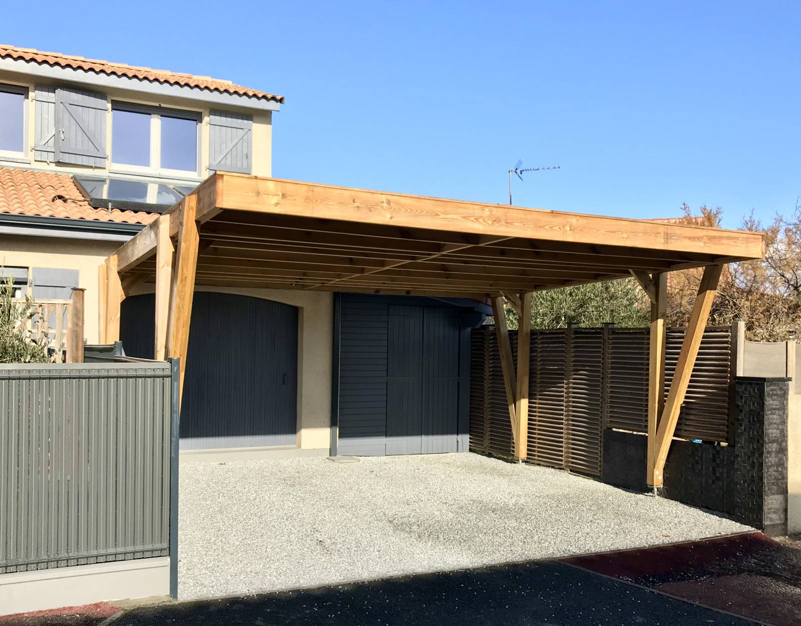 Nous pouvons installer un carport adossé à un mur de votre maison ou bien totalement indépendant de votre habitation.